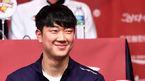 [OSEN=곽영래 기자] 10일 오후 서울 강남구 리베라호텔에서 프로배구 V리그 남자부 미디어데이가 진행됐다.대한항공 정지석이 미소를 짓고 있다. / youngrae@osen.co.kr