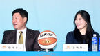 [OSEN=김성락 기자] 10일 오전 서울 서대문구 그랜드힐튼호텔 그랜드블룸에서 ‘2019~2020 하나원큐 여자프로농구’ 미디어데이가 열렸다.KB스타즈 안덕수 감도그, 강아정 선수가 사회자의 질문에 대답하고 있다./ksl0919@osen.co.