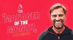 [OSEN=이승우 기자] 리버풀의 개막 8연승을 이끈 위르겐 클롭 감독이 '9월의 감독'으로 선정됐다.잉글랜드 프리미어리그(EPL) 사무국은 12일(이하 한국시간) "클롭 감독이 2개월 연속 ‘바클레이스 이달의 감독'으로 선정됐다&