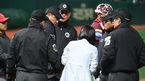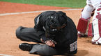 [OSEN=문학, 손용호 기자] 14일 인천 문학야구장에서 '2019 신한은행 MY CAR KBO 포스트시즌' 플레이오프 1차전 SK 와이번스와 키움 히어로즈의 경기가 열렸다.2회말 2사 최항의 파울타구에 맞은 박기택 구심이 쓰러지고 있다. /spjj@osen.co