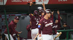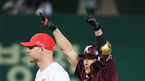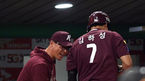 [OSEN=문학, 손용호 기자] 14일 인천 문학야구장에서 '2019 신한은행 MY CAR KBO 포스트시즌' 플레이오프 1차전 SK 와이번스와 키움 히어로즈의 경기가 열렸다.11회초 1사 2루 이정후의 안타때 홈을 밟은 김하성을 장정석 감독이 반갑게
