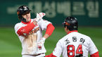 [OSEN=인천, 이대선 기자] 15일 오후 인천SK행복드림구장에서 ‘2019 신한은행 MYCAR KBO리그’ 플레이오프 2차전 SK 와이번스와 키움 히어로즈의 경기가 열렸다.7회말 무사 1루에서 SK 노수광이 우전 안타를 치고 환호하고 있다.