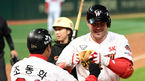 [OSEN=인천, 이대선 기자] 15일 오후 인천SK행복드림구장에서 ‘2019 신한은행 MYCAR KBO리그’ 플레이오프 2차전 SK 와이번스와 키움 히어로즈의 경기가 열렸다.6회말 무사에서 SK 로맥이 우중월 솔로 홈런을 치고 홈에서 조동화