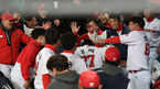 [OSEN=인천, 이대선 기자] 15일 오후 인천SK행복드림구장에서 ‘2019 신한은행 MYCAR KBO리그’ 플레이오프 2차전 SK 와이번스와 키움 히어로즈의 경기가 열렸다.2회초 무사에서 SK 로맥이 좌월 솔로 홈런을 치고 더그아웃에서 동