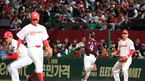 [OSEN=인천, 이대선 기자] 15일 오후 인천SK행복드림구장에서 ‘2019 신한은행 MYCAR KBO리그’ 플레이오프 2차전 SK 와이번스와 키움 히어로즈의 경기가 열렸다.8회초 1사에서 SK 서진용이 키움 김웅빈의 기습 번트 타구를 놓치고