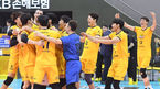 [OSEN=의정부, 곽영래 기자] KB손해보험이 15일 의정부실내체육관에서 열린 ‘도드람 2019-2020 V리그’ 남자부 한국전력과의 홈 개막 경기에서 3-2(22-25, 18-25, 25-19, 25-19, 15-13)로 역전승을 거뒀다.역전승을 거둔 KB손해보험 선수