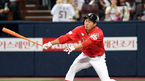 [OSEN=인천, 이대선 기자] 17일 오후 서울 고척스카이돔에서 ‘2019 신한은행 MYCAR KBO리그’ 플레이오프 3차전 키움 히어로즈와 SK 와이번스의 경기가 열렸다.5회말 2사 1,2루에서 키움 김규민이 좌전 적시타를 치고 있다. /sunday