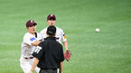 [OSEN=인천, 이대선 기자] 17일 오후 서울 고척스카이돔에서 ‘2019 신한은행 MYCAR KBO리그’ 플레이오프 3차전 키움 히어로즈와 SK 와이번스의 경기가 열렸다.6회초 1사 만루에서 SK 노수광을 병살타로 처리한 키움 이지영과 김