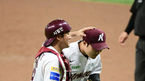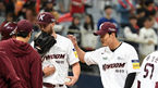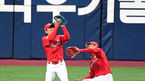 [OSEN=지형준 기자] 17일 오후 서울 고척스카이돔에서 ‘2019 신한은행 MYCAR KBO리그’ 플레이오프 3차전 키움 히어로즈와 SK 와이번스의 경기가 열렸다.1회초 수비를 마치고 키움 이지영이 김하성을 격려하고 있다. /jpnews@osen.c