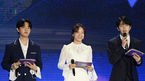 [OSEN=부산, 민경훈 기자] 19일 오후 부산 화명생태공원에서 부산원아시아페스티벌 K-POP 콘서트가 열렸다.콘서트 무대 위에서김재환과 김세정 보민이 포즈를 취하고 있다./ rumi@osen.co.kr