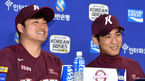 [OSEN=잠실, 최규한 기자] 21일 오후 서울 잠실야구장에서 ‘2019 신한은행 마이카 KBO 한국시리즈’ 두산 베어스와 키움 히어로즈의 미디어데이가 열렸다.키움 이지영과 이정후가 참석해 시리즈 향방을 예측하는 포토타임을
