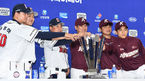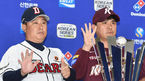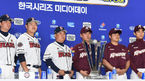 [OSEN=잠실, 최규한 기자] 21일 오후 서울 잠실야구장에서 ‘2019 신한은행 마이카 KBO 한국시리즈’ 두산 베어스와 키움 히어로즈의 미디어데이가 열렸다.두산 김태형 감독과 오재일-이영하, 키움 장정석 감독과 이지영-이정