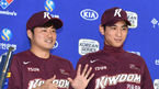 [OSEN=잠실, 최규한 기자] 21일 오후 서울 잠실야구장에서 ‘2019 신한은행 마이카 KBO 한국시리즈’ 두산 베어스와 키움 히어로즈의 미디어데이가 열렸다.키움 이지영과 이정후가 참석해 미소짓고 있다. /dreamer@osen.co.kr