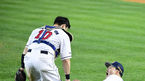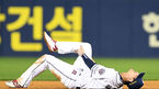 [OSEN=잠실, 손용호 기자] 22일 오후 서울 잠실구장에서 ‘2019 신한은행 MY CAR KBO리그 포스트시즌’ 두산 베어스와 키움 히어로즈의 한국시리즈 1차전이 열렸다.6회초 김재호가 서건창의 타구를 처리 후 쥐가 올라 쓰러져 있