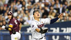 [OSEN=잠실, 손용호 기자] 22일 오후 서울 잠실구장에서 ‘2019 신한은행 MY CAR KBO리그 포스트시즌’ 두산 베어스와 키움 히어로즈의 한국시리즈 1차전이 열렸다.6회초 2사 1,3루 서건창의 타구를 처리한 김재호가 쥐가 올라 쓰