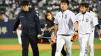 [OSEN=잠실, 지형준 기자] 22일 오후 서울 잠실구장에서 ‘2019 신한은행 MY CAR KBO리그 포스트시즌’ 두산 베어스와 키움 히어로즈의 한국시리즈 1차전이 열렸다.6회초 수비를 마치고 두산 김재호가 다리 경련 증상을 보이며