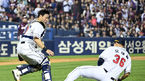 [OSEN=잠실, 지형준 기자] 22일 오후 서울 잠실구장에서 ‘2019 신한은행 MY CAR KBO리그 포스트시즌’ 두산 베어스와 키움 히어로즈의 한국시리즈 1차전이 열렸다.6회초 1사 만루에서 두산 허경민이 키움 박동원의 3루땅볼을 처