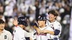 [OSEN=잠실, 이대선 기자] 두산 베어스가 1차전에서 짜릿한 끝내기 승리를 거뒀다.두산은 22일 서울 잠실구장에서 열린 2019 신한은행 MY CAR KBO리그 키움과 한국시리즈 1차전에서 7-6으로 승리했다. 1차전 승리 팀의 한국시리즈 우승