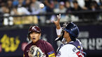 [OSEN=잠실, 지형준 기자] 23일 오후 서울 잠실구장에서 ‘2019 신한은행 MY CAR KBO리그 포스트시즌’ 두산 베어스와 키움 히어로즈의 한국시리즈 2차전이 열렸다.6회초 1사 1루에서 키움 샌즈가 박병호의 1타점 적시 2루타에 홈