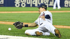 [OSEN=잠실, 곽영래 기자] 23일 오후 서울 잠실구장에서 ‘2019 신한은행 MY CAR KBO리그 포스트시즌’ 두산 베어스와 키움 히어로즈의 한국시리즈 2차전이 열렸다.6회초 1사 1,3루 두산 오재일이 키움 이지영의 번트 뜬공을 잡으