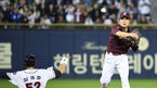 [OSEN=잠실, 손용호 기자] 23일 오후 서울 잠실구장에서 ‘2019 신한은행 MY CAR KBO리그 ’ 두산 베어스와 키움 히어로즈의 한국시리즈 2차전 경기가 벌어졌다.5회말 1사 1루 김혜성의 호수비로 병살플레이를 이뤄낸 김하성이