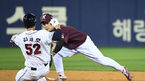 [OSEN=잠실, 곽영래 기자] 23일 오후 서울 잠실구장에서 ‘2019 신한은행 MY CAR KBO리그 포스트시즌’ 두산 베어스와 키움 히어로즈의 한국시리즈 2차전이 열렸다.3회말 1사 키움 김하성이 2루 도루를 시도하는 두산 김재호를