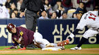[OSEN=잠실, 지형준 기자] 23일 오후 서울 잠실구장에서 ‘2019 신한은행 MY CAR KBO리그 포스트시즌’ 두산 베어스와 키움 히어로즈의 한국시리즈 2차전이 열렸다.1회초 무사 1,3루에서 키움 서건창이 이정후의 희생플라이에 홈
