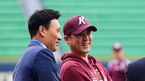 [OSEN=잠실, 지형준 기자] 23일 오후 서울 잠실구장에서 ‘2019 신한은행 MY CAR KBO리그 포스트시즌’ 두산 베어스와 키움 히어로즈의 한국시리즈 2차전이 열린다.경기에 앞서 키움 장정석 감독과 이승엽 해설위원이 이야기를