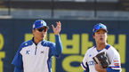 [OSEN=수원, 곽영래 기자] 김경문 감독이 이끄는 한국 야구대표팀이 24일 오후 수원 KT위즈파크에서 훈련을 가졌다.양의지와 진갑용 코치가 수비 훈련을 하고 있다. /youngrae@osen.co.kr