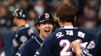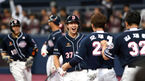 [OSEN=고척, 손용호 기자] 25일 서울 고척돔서 ‘2019 신한은행 MY CAR KBO리그 ’ 키움 히어로즈와 두산 베어스의 한국시리즈 3차전 경기가 열렸다.3회초 무사 3루 박건우가 투런 홈런을 치고 동료들과 기쁨을 나누고있다. /spjj@os
