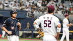 [OSEN=고척, 손용호 기자] 25일 서울 고척돔서 ‘2019 신한은행 MY CAR KBO리그 ’ 키움 히어로즈와 두산 베어스의 한국시리즈 3차전 경기가 열렸다.1회초 1사 1루 브리검의 견제구가 빠지고 있다. 1루주자 정수빈은 2루로 진루. /sp