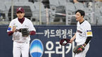 [OSEN=고척, 곽영래 기자] 25일 오후 서울 고척스카이돔에서 ‘2019 신한은행 MY CAR KBO리그 포스트시즌’ 키움 히어로즈와 두산 베어스의 한국시리즈 3차전이 열렸다.키움 김하성이 송성문과 이야기를 나누고 있다./youngrae@osen.