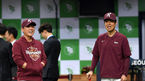 [OSEN=고척, 곽영래 기자] 25일 오후 서울 고척스카이돔에서 ‘2019 신한은행 MY CAR KBO리그 포스트시즌’ 키움 히어로즈와 두산 베어스의 한국시리즈 3차전이 열린다.경기에 앞서 키움 김웅빈이 두산 김재환과 이야기를 나누