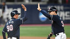[OSEN=고척, 곽영래 기자] 26일 오후 서울 고척스카이돔에서 ‘2019 신한은행 MY CAR KBO리그 포스트시즌’ 키움 히어로즈와 두산 베어스의 한국시리즈 4차전이 열렸다.연장 10회초 2사 3루 두산 선수들이 오재일이 적시타를 때