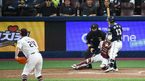 [OSEN=고척, 박준형 기자] 26일 오후 서울 고척스카이돔에서 ‘2019 신한은행 MY CAR KBO리그 포스트시즌’ 키움 히어로즈와 두산 베어스의 한국시리즈 4차전이 열렸다.5회초 2사 만루 두산 김재호의 타석 폭투때 3루 주자 정수