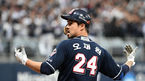[OSEN=고척, 손용호 기자] 26일 서울 고척돔서 ‘2019 신한은행 MY CAR KBO리그 ’ 키움 히어로즈와 두산 베어스의 한국시리즈 4차전 경기가 열렸다.5회초 2사 만루 오재원이 역전 2타점 적시타를 치고환호하고 있다. /spjj@osen.co.kr