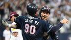 [OSEN=고척, 이대선 기자] 26일 오후 서울 고척스카이돔에서 ‘2019 신한은행 MY CAR KBO리그 포스트시즌’ 키움 히어로즈와 두산 베어스의 한국시리즈 4차전이 열렸다.5회초 2사 만루에서 두산 오재원의 역전타 때 홈을 밟은 김