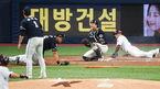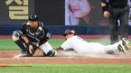 [OSEN=고척, 이대선 기자] 26일 오후 서울 고척스카이돔에서 ‘2019 신한은행 MY CAR KBO리그 포스트시즌’ 키움 히어로즈와 두산 베어스의 한국시리즈 4차전이 열렸다.2회말 무사 1,3루에서 키움 이정후의 번트 때 3루주자 박정