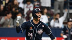 [OSEN=고척, 지형준 기자] 26일 오후 서울 고척스카이돔에서 ‘2019 신한은행 MY CAR KBO리그 포스트시즌’ 키움 히어로즈와 두산 베어스의 한국시리즈 4차전이 열렸다.2회초 2사 2루에서 두산 허경민이 동점 적시타를 날리고 기