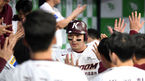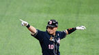 [OSEN=고척, 손용호 기자] 26일 서울 고척돔서 ‘2019 신한은행 MY CAR KBO리그 ’ 키움 히어로즈와 두산 베어스의 한국시리즈 4차전 경기가 열렸다.2회초 2사 2루 허경민이 동점 적시타를 치고 기뻐하고있다. /spjj@osen.co.kr