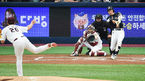 [OSEN=고척, 이대선 기자] 26일 오후 서울 고척스카이돔에서 ‘2019 신한은행 MY CAR KBO리그 포스트시즌’ 키움 히어로즈와 두산 베어스의 한국시리즈 4차전이 열렸다.1회말 2사 1루에서 키움 샌즈의 적시타 때 홈을 밟은 1루주
