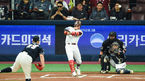 [OSEN=고척, 박준형 기자] 26일 오후 서울 고척스카이돔에서 ‘2019 신한은행 MY CAR KBO리그 포스트시즌’ 키움 히어로즈와 두산 베어스의 한국시리즈 4차전이 열렸다.1회말 키움 선두타자 서건창이 안타를 날리고 있다. /soul101
