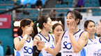 [OSEN=부천, 이대선 기자] 28일 오후 경기도 부천실내체육관에서 ‘2019-2020 하나원큐 WKBL’ KEB하나은행과 신한은행의 경기가 열렸다.이날 신한은행은 KEB하나은행에 87-75로 승리했다.경기 종료 후 신한은행 선수들이 승리의