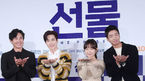 [OSEN=민경훈 기자] 28일 오전 서울 광진구 자양동 건대입구 롯데시네마서 영화 '선물' 특별상영회 및 기자간담회가 열렸다.신하균, 수호(김준면), 김슬기, 유수빈, 허진호 감독이 무대 위에서 포즈를 취하고 있다./ rumi@osen.co.kr