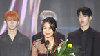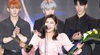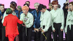 [OSEN=고양(경기),박준형 기자] 30일 오후 경기도 고양시 일산동구 MBC드림센터에서 MBC 뮤직 '쇼 챔피언(Show Champion)' 생방송이 진행됐다.1위를 차지한 뉴이스트가 김신영의 축하를 받고 있다. ./ soul1014@osen.co.kr