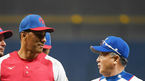 OSEN=고척, 곽영래 기자] 1일 오후 서울 고척스카이돔에서 '2019 세계야구소프트볼연맹(WBSC) 프리미어12' 대한민국과 푸에르토리코의 평가전이 열렸다.푸에르토리코 후안 곤잘레스 감독과 한국 김경문 감독이 이야기를 나누고 있