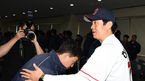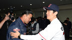 [OSEN=부산, 이대선 기자] 1일 오전 부산 사직야구장에서 프로야구 롯데 자이언츠 허문회 신임 감독 취임식이 열렸다.롯데 허문회 감독이 송승준과 인사를 나누고 있다. /sunday@osen.co.kr