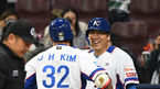 [OSEN=고척, 곽영래 기자] 1일 오후 서울 고척스카이돔에서 '2019 세계야구소프트볼연맹(WBSC) 프리미어12' 대한민국과 푸에르토리코의 평가전이 열렸다.5회말 2사 1루 한국 김현수가 투런 홈런을 때려낸 김재환과 기뻐하고 있다. /you