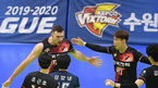 [OSEN=수원, 김성락기자] 2일 오후 수원 실내체육관에서 '도드람 2019-2020 V리그' 남자부 한국전력과 OK저축은행의 경기가 열렸다.이 날 경기에서 OK저축은행 3-0 완승을 거두며 5연승에 성공했다.경기를 마치고 OK저축은행 선수들이