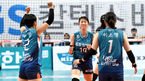 [OSEN=장충, 최규한 기자] 6일 오후 서울 장충체육관에서 ‘도드람 2019-2020 V-리그’ 여자부 GS칼텍스와 현대건설의 경기가 열렸다.3세트, GS칼텍스가 세트를 가져가며 환호하고 있다. /dreamer@osen.co.kr